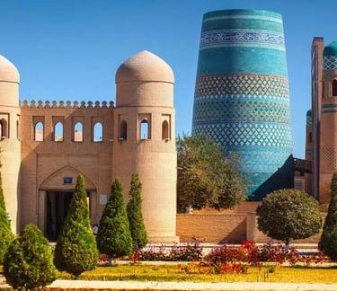 Città museo con 2500 anni di storia, situata nel nord ovest dell'Uzbekistan in un grande oasi agricolo. Il suo centro storico risale ai tempi del Khanato di Kiva, del XVI secolo. Khiva è famosa per i suoi straordinari monumenti architettonici e la sua storia affascinante, che racconta di antichi commerci e influenze culturali che hanno plasmato la regione. La città è un vero e proprio museo a cielo aperto, con minareti, moschee e madrase che testimoniano l'ingegno delle civiltà passate e l'importanza di Khiva come tappa fondamentale sulla Via della Seta.